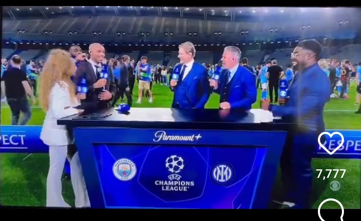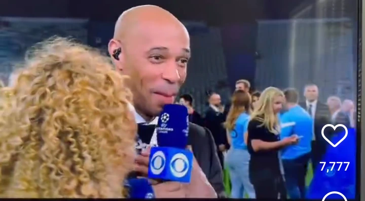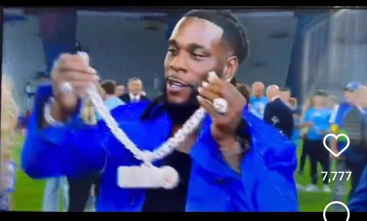 While being interviewed after the Champions League game between Manchester City and Inter Milan, Burna Boy removed his ‘Gambo’ diamond necklace and wore the piece on Thierry Henry neck, who seems very delighted.