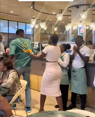 The lover girl had surprise packages arranged for her boyfriend and she showed up with an entourage of people to surprise her man at the restaurant where he was waiting for her.