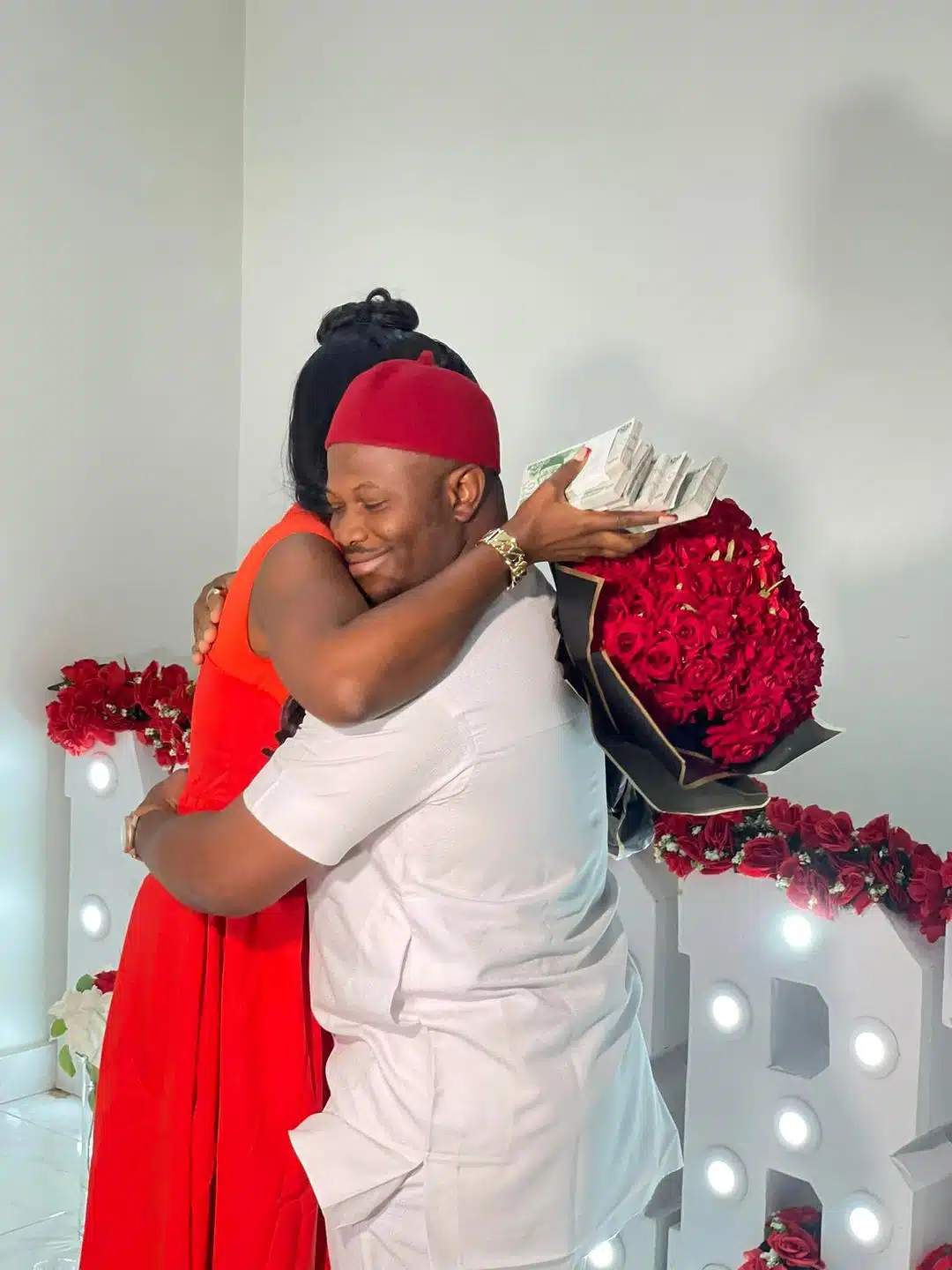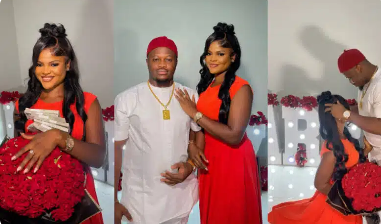 When Mario Emmanuel was seen proposing to Favour Nwachukwu, it may seem as though the movie director was not pressured by the ongoing trend of kneeling to propose as he was seen standing and proposing to his fiancee.