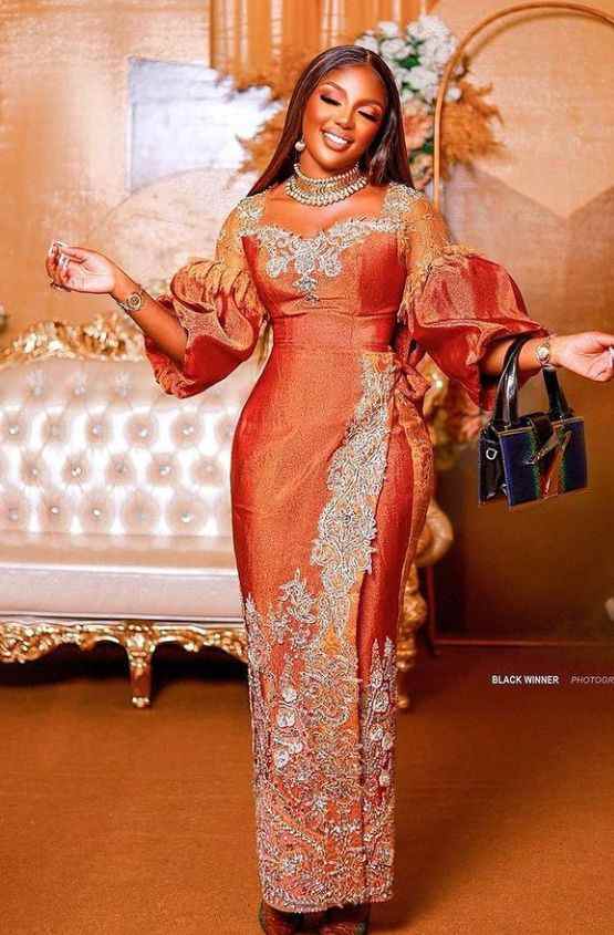 Latest Owambe Styles for Wedding, Ladies are really turning up in breathtaking Styles for weddings and parties. One will easily conclude that fashion designers are not relenting in giving fashionistas the gorgeous styles that they desire. Owambe Styles that are currently trending for Ladies include gowns, skirts and blouses, and wrapper and blouse Styles. Gowns seem to be the most popular of them all. Don’t overrate the power of fabrics in giving you a classy look to that occasion. Popular fabrics for owambe this season include; Lace, Sequins, George, and even satin fabrics.