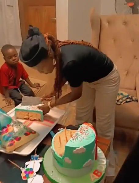 “Na Dangote cement dem use bake am?” – Speculations as mother struggles to cut birthday cake, A Nigerian mother causes a buzz following the effort required to cut her child’s cake during his birthday party.