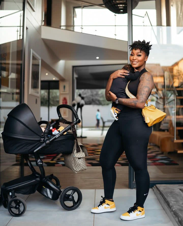 When the South African singer shared a photo of her baby for the first time, it showed both of them in matching black outfits.