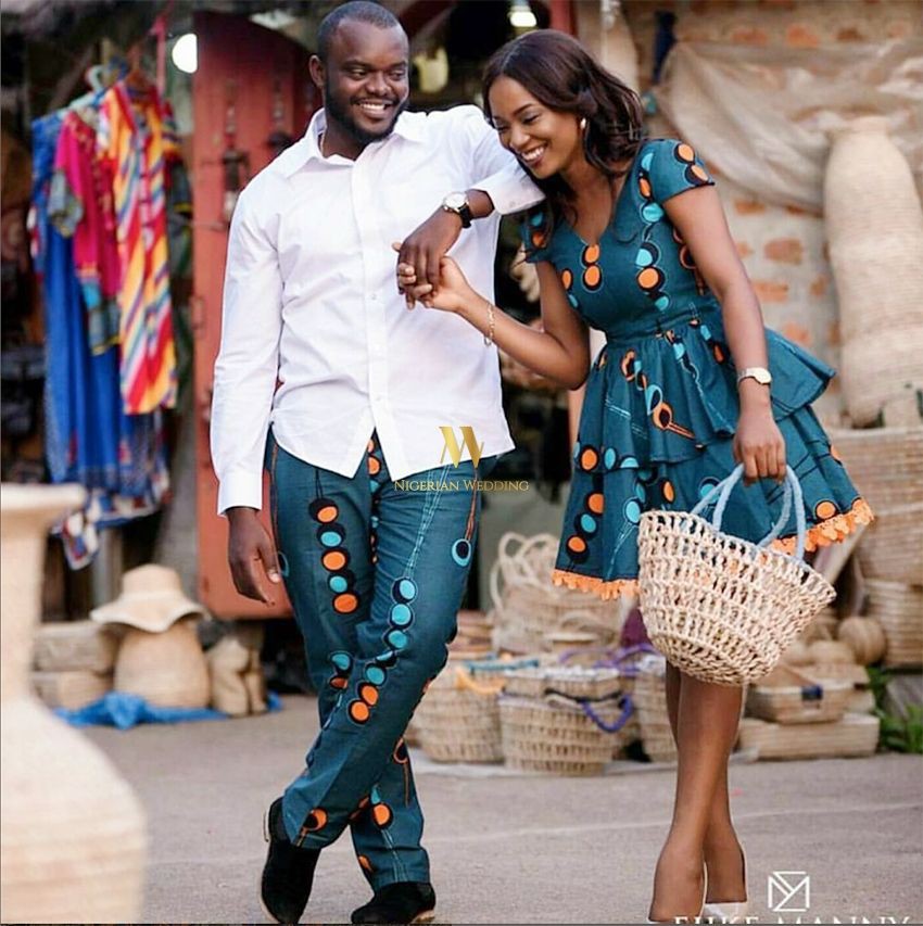 Weddings, pre-wedding photographs, wedding anniversary celebrations, child dedications, and church ceremonies are all common occasions for couples to dress up in uniform Ankara textiles. There’s nothing quite like picking out a good fabric and making a lovely style with your partner, then wearing it to an occasion.