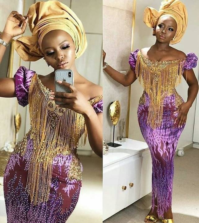 While many figure that Aso Ebi with periphery will blur soon, it is as yet coming out better. You can involve the edges in adorning your neck area. You can make this outfit long or short, contingent upon your inclination.