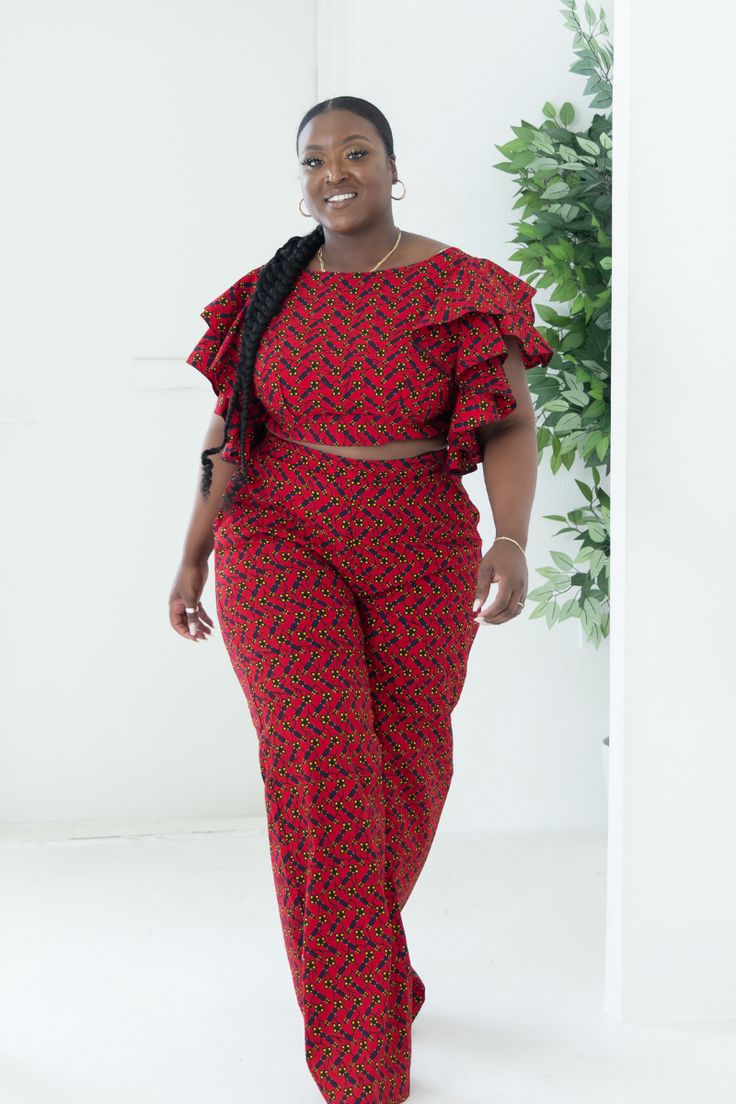 Stunning Two Piece Ankara Set For Women, For a fun and playful look, consider an Ankara two-piece set. This style can be a crop top and skirt or a blouse and pants, depending on your preference. Ready to update your style with the latest lace trends? Look no further than our beautiful collection of trendy lace! We are proud to offer a wide variety of lace styles that add a touch of sophistication and elegance to any outfit.Two Piece Ankara Set For Women