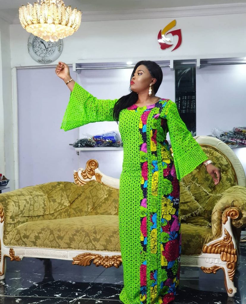 They combine Ankara materials with dry lace and chiffon to create new long and short gown styles.