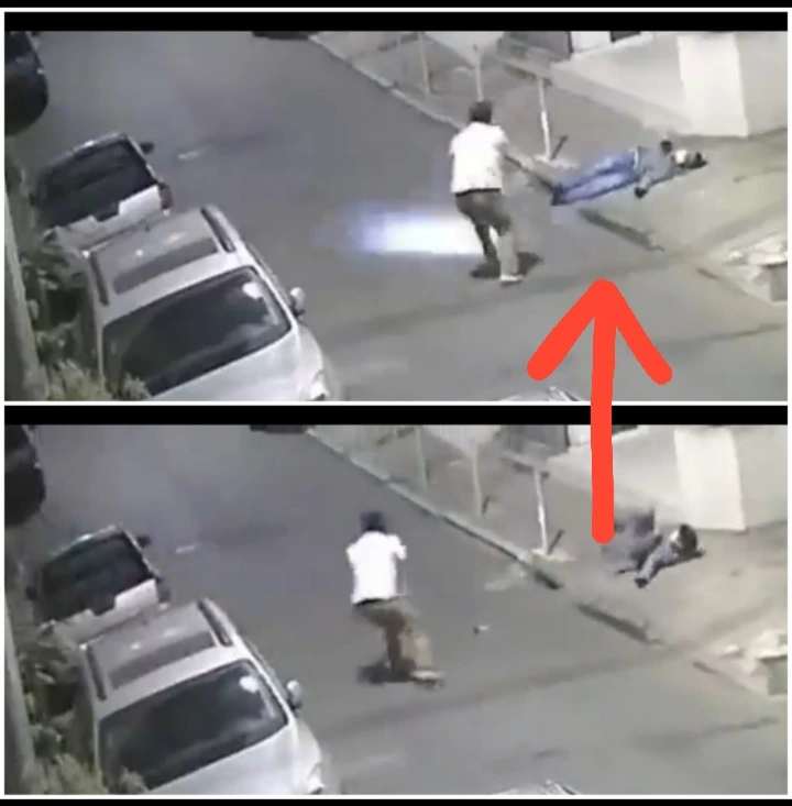 Before the two thieves could even search him, the man pulled out his gun and started shooting at both the thieves, and one of them was shot almost four times and it looked like he died on the spot, and the other tried to run but got caught with a bullet as well.